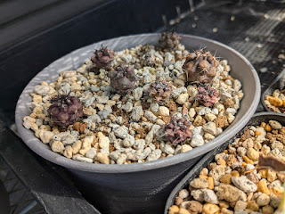 春からずっと屋外管理。夏は斜光し、ほぼ問題なく乗り越えた。やはり春と秋に一気に成長する。うちの実生サボテンの中では特に成長が早い。1年半で親指程度の大きさになった。