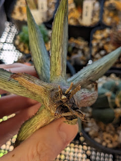 メルカリで子株を入手。色合いはアガベ・ロファンサに似ているが葉の太さと鋸歯は全くの別物。大型アガベで耐寒性もそこそこあるよう。地植えしてみたい。